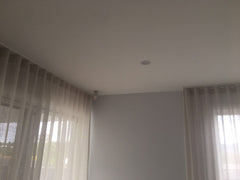Easytrack© built into the ceiling:An unpainted pelmet with the Easytrack© curtain system built into it.